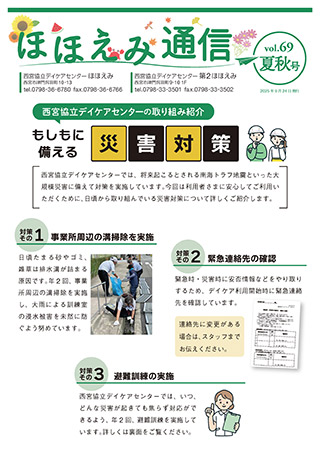 年4回、利用者さま・ご家族やケアマネジャーの方々向けに発行している「ほほえみ通信」では、ほほえみ・第2ほほえみでの取り組みやご自宅でも活用できる運動など、知って得する情報をご紹介しています。