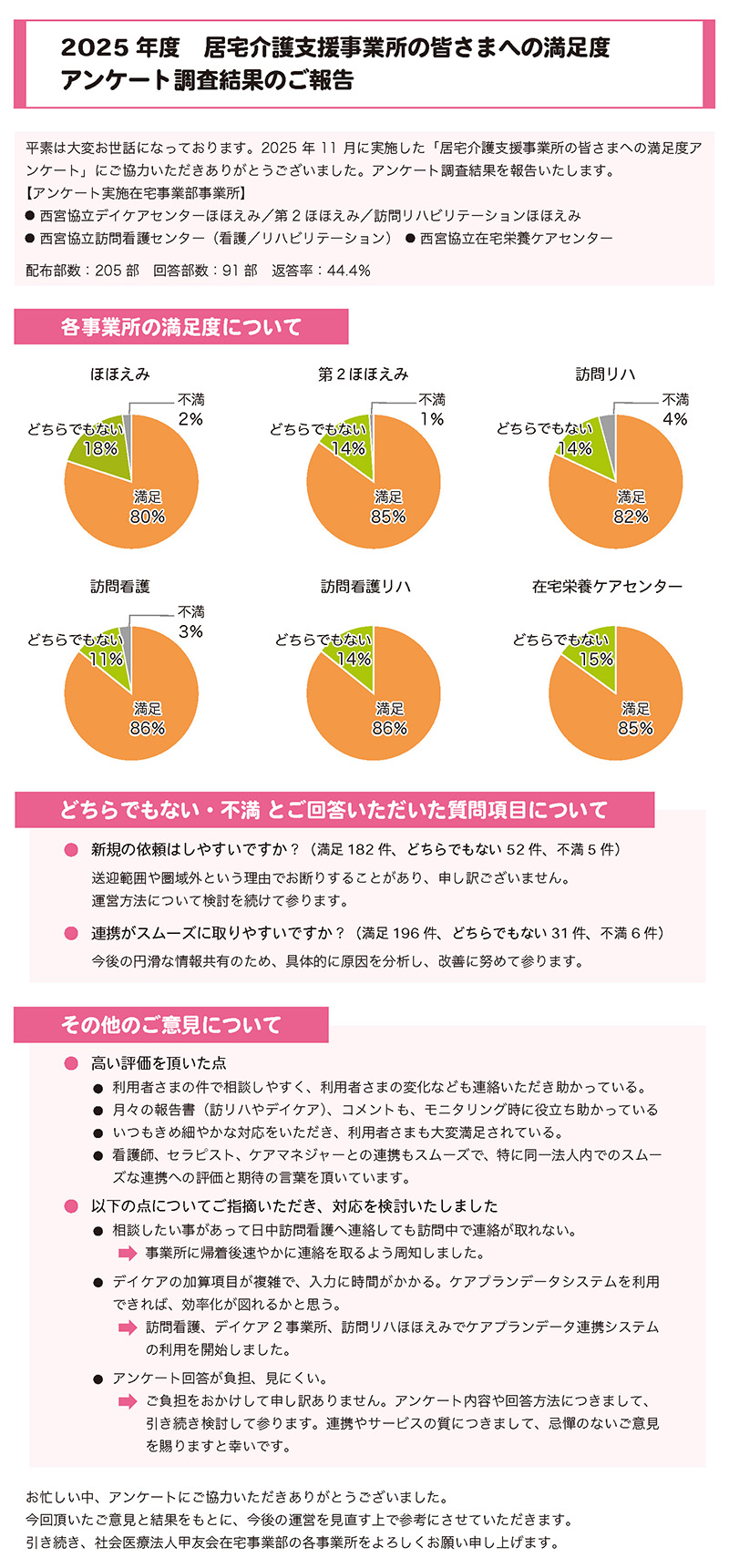 当法人在宅事業部の各事業所では、2025年11月に居宅介護支援事業所の介護支援専門員の皆さまを対象に満足度アンケートを実施しました。