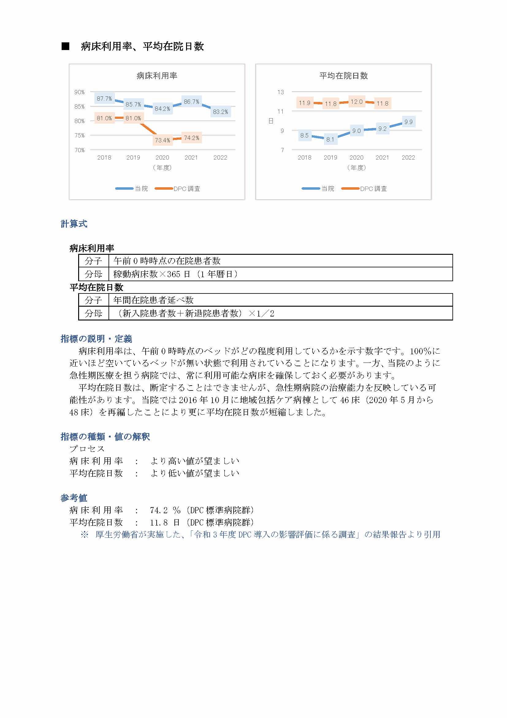 病床利用率、平均在院日数