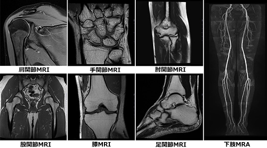 一般撮影装置(FPD)2台、CT 2台(80列、320列)、MRI 2台(1.5T、3.0T)、X線透視装置1台、血管撮影装置1台、ポータブルX線撮影装置2台、骨塩定量装置1台、 外科用イメージ2台